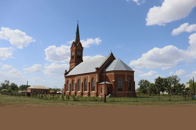 Эта кирха, построенная в Старополтавском районе конце 80-х годов XIX века по проекту архитектора Иоганна Якобсталя, на сегодняшний день входит в двадцатку самых красивых церквей неоготического стиля России. Ее высота — 39,5 м, на вершине установлен трёхметровый ажурный латинский крест.