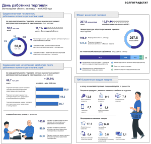 297,8 млрд рублей – именно такой оборот розничной торговли в Волгоградской области зафиксирован за пять месяцев 2025 года. Это составляет 10,8% от общего объема розничных продаж в субъектах Южного федерального округа.