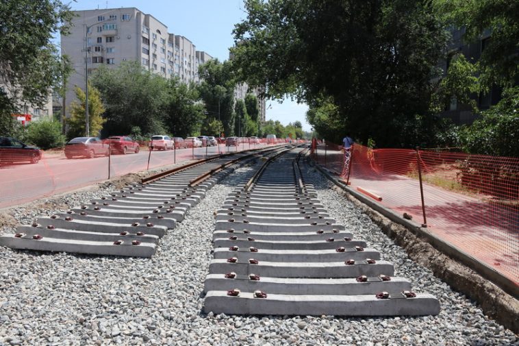 В настоящее время работы по укладке нового трамвайного пути идут на участке улицы Голубинской от здания №3 до улицы Рокоссовского. Перед этим здесь устроили котлован глубиной 65 см, уплотнили грунт и сформировали новую подушку из геотекстиля и песка. Рельсошпальную решетку уже смонтировали на первом участке – 250 метрах будущего пути.