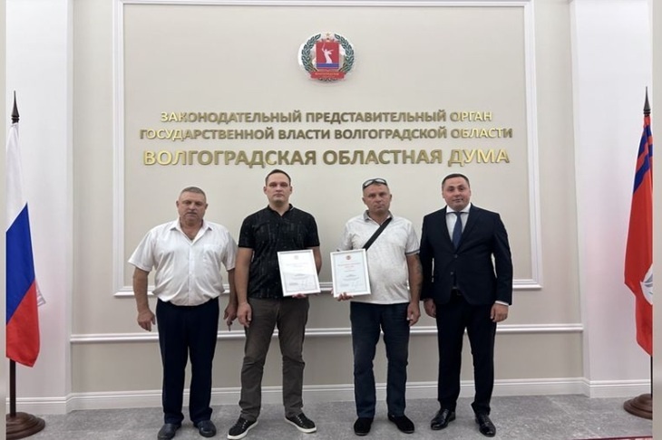 Жителям Волгограда Александру Головачеву и Сергею Скрипкину вручили почетные грамоты за спасение тонущего ребенка. Награждение прошло в Волгоградской областной думе.
