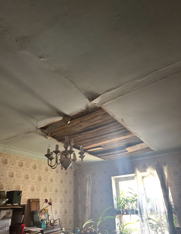 Подрядчик демонтировал кровлю еще в мае и больше никаких работ на объекте не велось. Но, самое главное, ничего не было сделано для защиты дома от возможных затоплений во время дождей. В результате из-за сильных осадков 7 августа в двух жилых помещениях обрушился потолок.