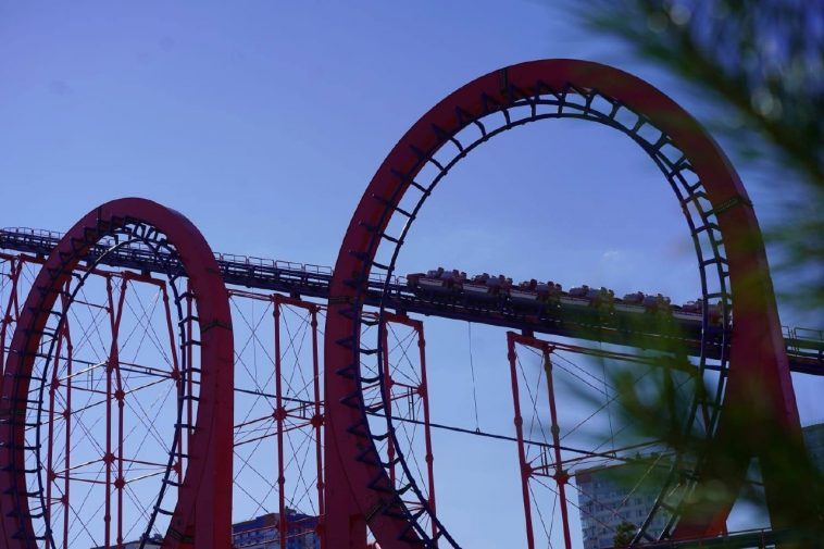 «Русские горки» представляют собой трассу длиной 700 метров с двумя мертвыми петлями и спиралью, создающей эффект невесомости. Максимальная высота конструкции составляет 34 метра,