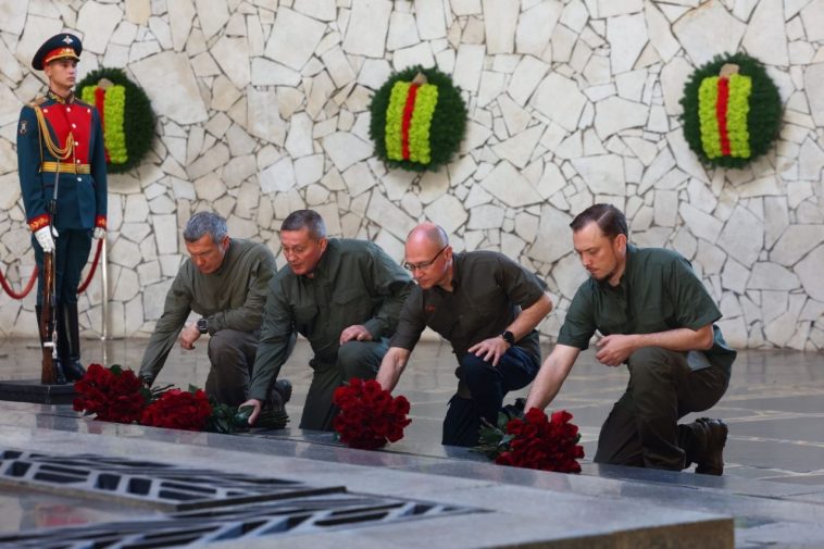 В рамках визита Кириенко вместе с губернатором области Андреем Бочаровым возложил цветы на Мамаевом кургане в память о защитниках Отечества.
