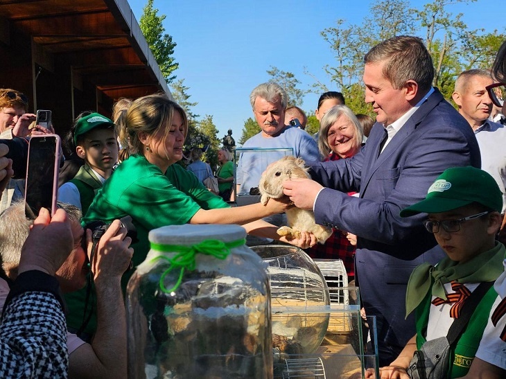 Вот кролик Стеша. Он познакомился с Андреем Ивановичем во время его прогулки по обновленной набережной Волгограда в мае 2025 года.