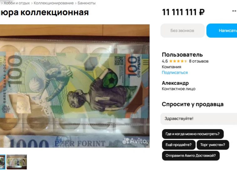 К слову, такое объявление — далеко не единственное. Волгоградцы регулярно пытаются продать памятные купюры Банка России, выпущенные к ЧМ-2018. В сети встречаются объявления о продаже таких же денежных знаков за 5 и 8 миллионов рублей. Но есть и более экстравагантные варианты. Например, житель Владикавказа за 100-рублевую памятную банкноту просит аж 530 миллионов рублей.