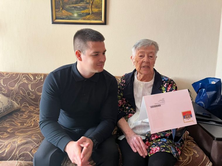 Письмо от главы государства с поздравлением передал Нине Васильевне депутат Волгоградской облдумы, участник СВО, Александр Нелепин.