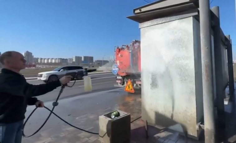 Для очистки применяются установки высокого давления — они позволяют эффективно удалять грязь не только с павильонов, но и с лавочек, урн и зон ожидания транспорта.