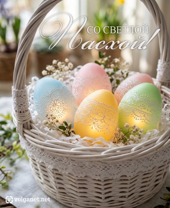 Затем ими можно обменяться в рабочих чатах, в группах в соцсетях, отправить открытку родственникам или друзьям. Volganet.net создал специально для вас более 40 оригинальных открыток на Пасхальную тему. Открытки с куличами, яйцами, ангелами и красивыми пожеланиями.