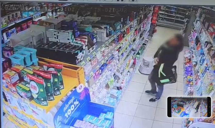Момент преступления зафиксировали установленные в магазине камеры. На записи видно, как мужчина прячет товар в штаны.
