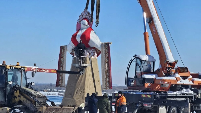 in Общество Десятиметровое чучело Масленицы в народном костюме установили в Центральном парке Волгограда