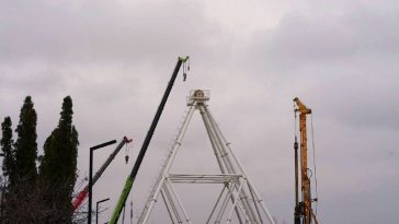 in Общество Две последние колонны «Башни свободного падения» устанавливают в парке Волгограда Для монтажа аттракциона в ЦПКиО пригнали кран грузоподъемностью 500 тонн.