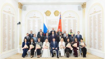 В зале Воинской и Трудовой Славы отметили работников промышленности, сельского хозяйства, здравоохранения и образования — среди награжденных заслуженные врачи, механизаторы и педагоги.