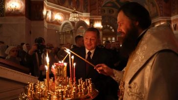 Бочаров посетил пасхальную службу в соборе Александра Невского в Волгограде
